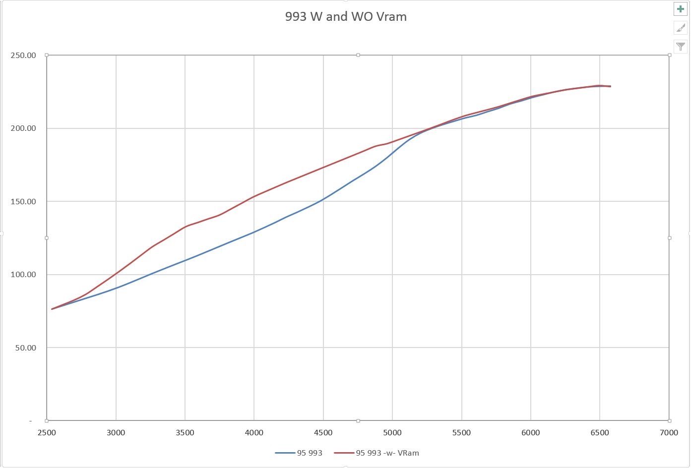 What is the result - the VarioRAM is rated at 10 more HP than the stock 993. This is because of the valve size alone. VarioRAM engine intake/exhaust valve size is 50mm/43.5mm vs 49mm/41.5mm. This has nothing to do with the VarioRAM.