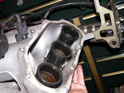 This is the VarioRAM in it's normal position, trumpets extended. The rubber seals seal against the individual intake runner completely blocking off the primary plenum, secondary throttle body and resonance chamber.