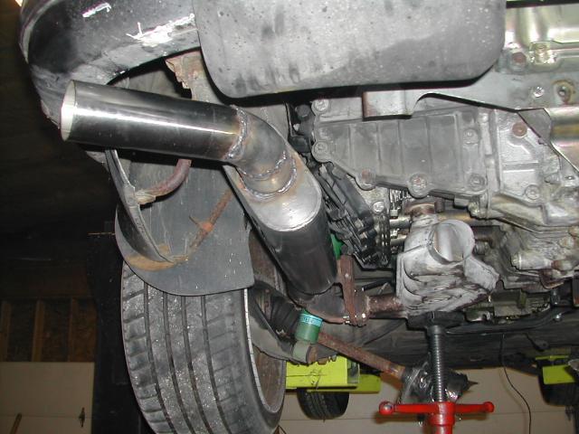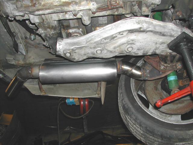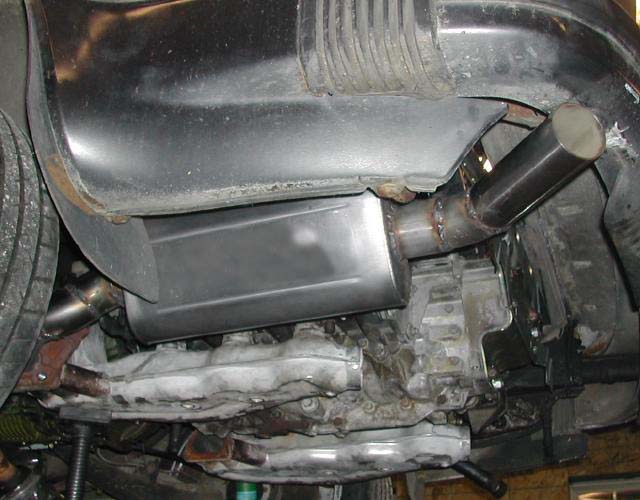 We custom fabricate this exhaust using a ceramic packed stainless muffler. Tubing size is 2.5" throughout, and mandrel bent constant-diameter tubing is used . We use the factory "Y" feed from the catalyst. Includes Oxygen sensor port and polished tip. Price is $395 and includes bracket (painted black, not unfinished as shown). Each is custom fabricated on a car so we KNOW it fits!