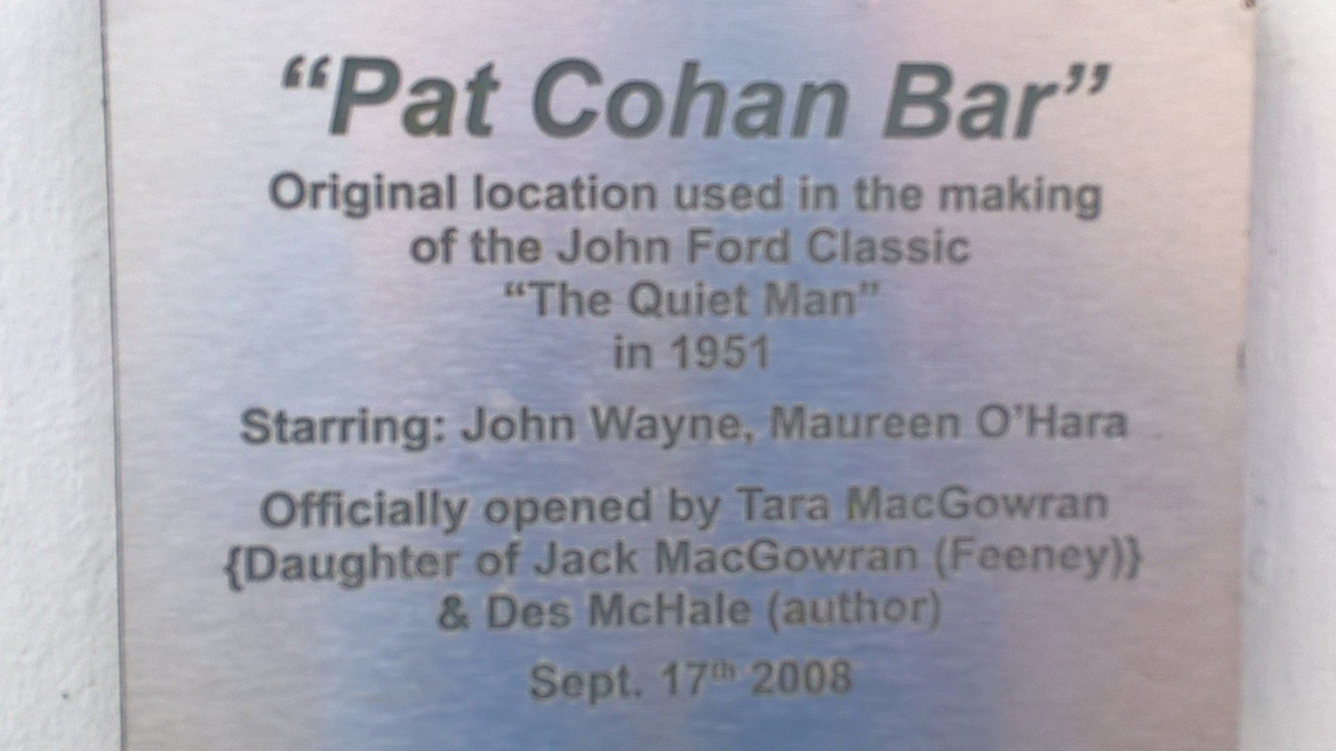 Now Entering Cong Pat Cohan Bar, Cong, where “The Quiet Man” was filmed, 2016 Inside Pat Cohen Bar Quiet man Tourist Trap Museum